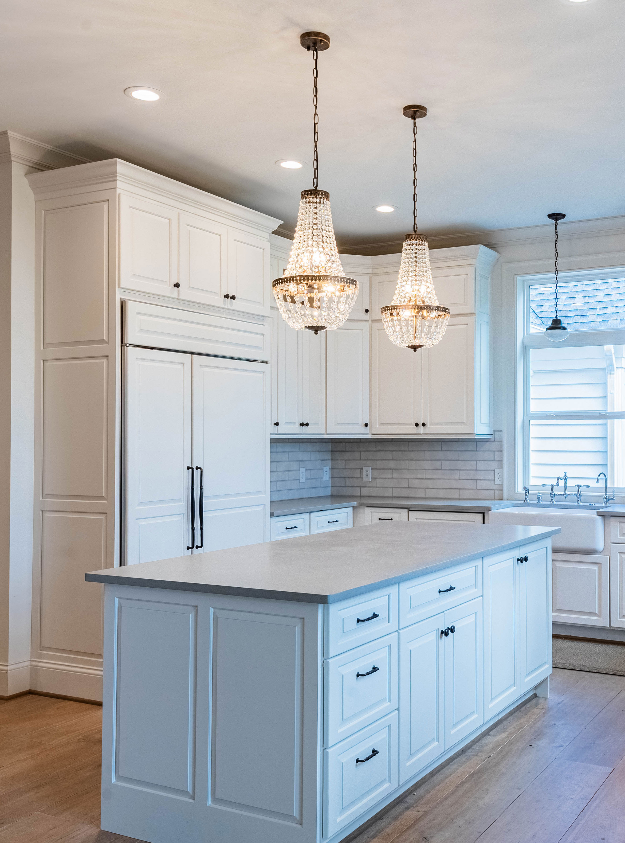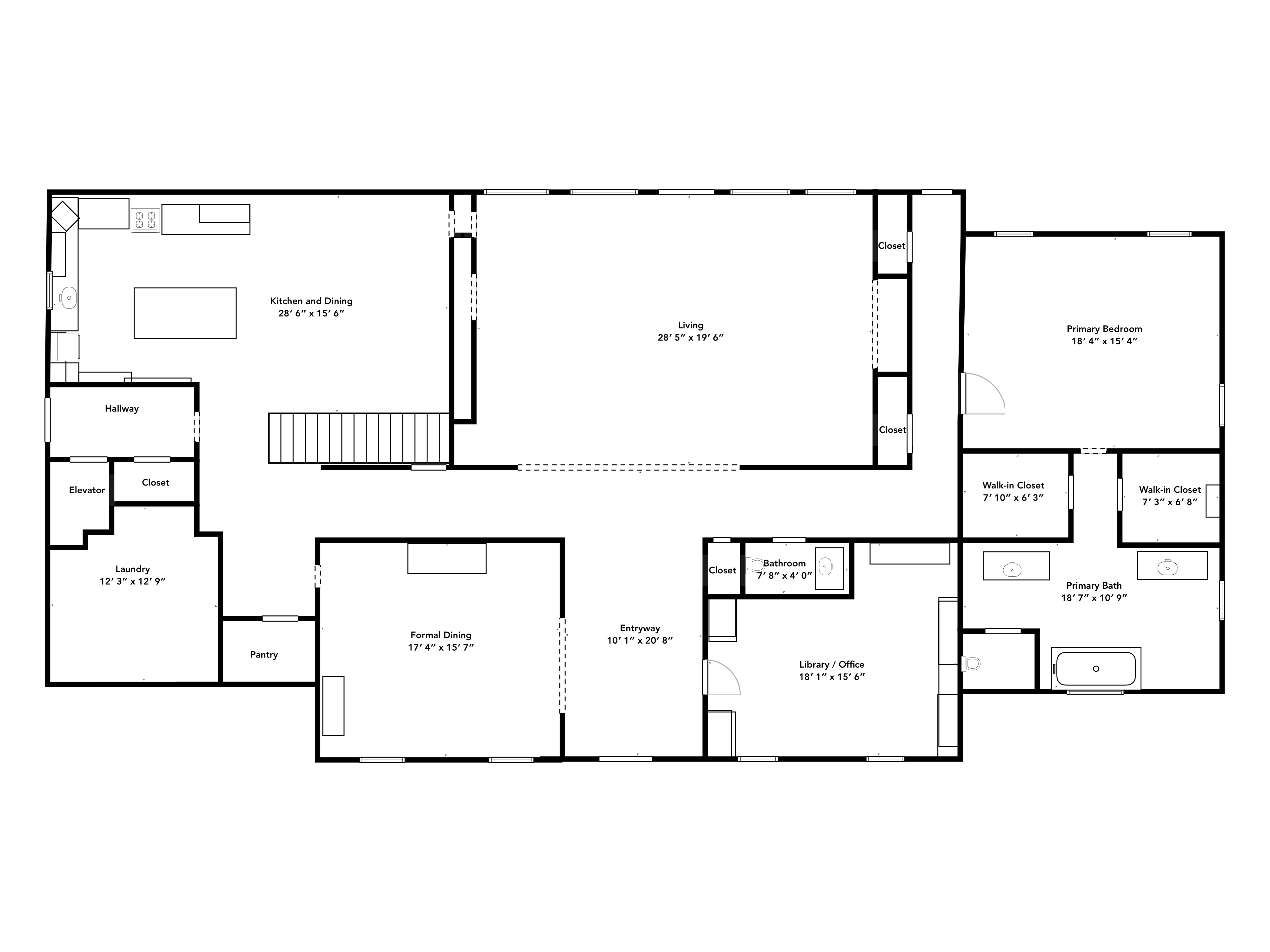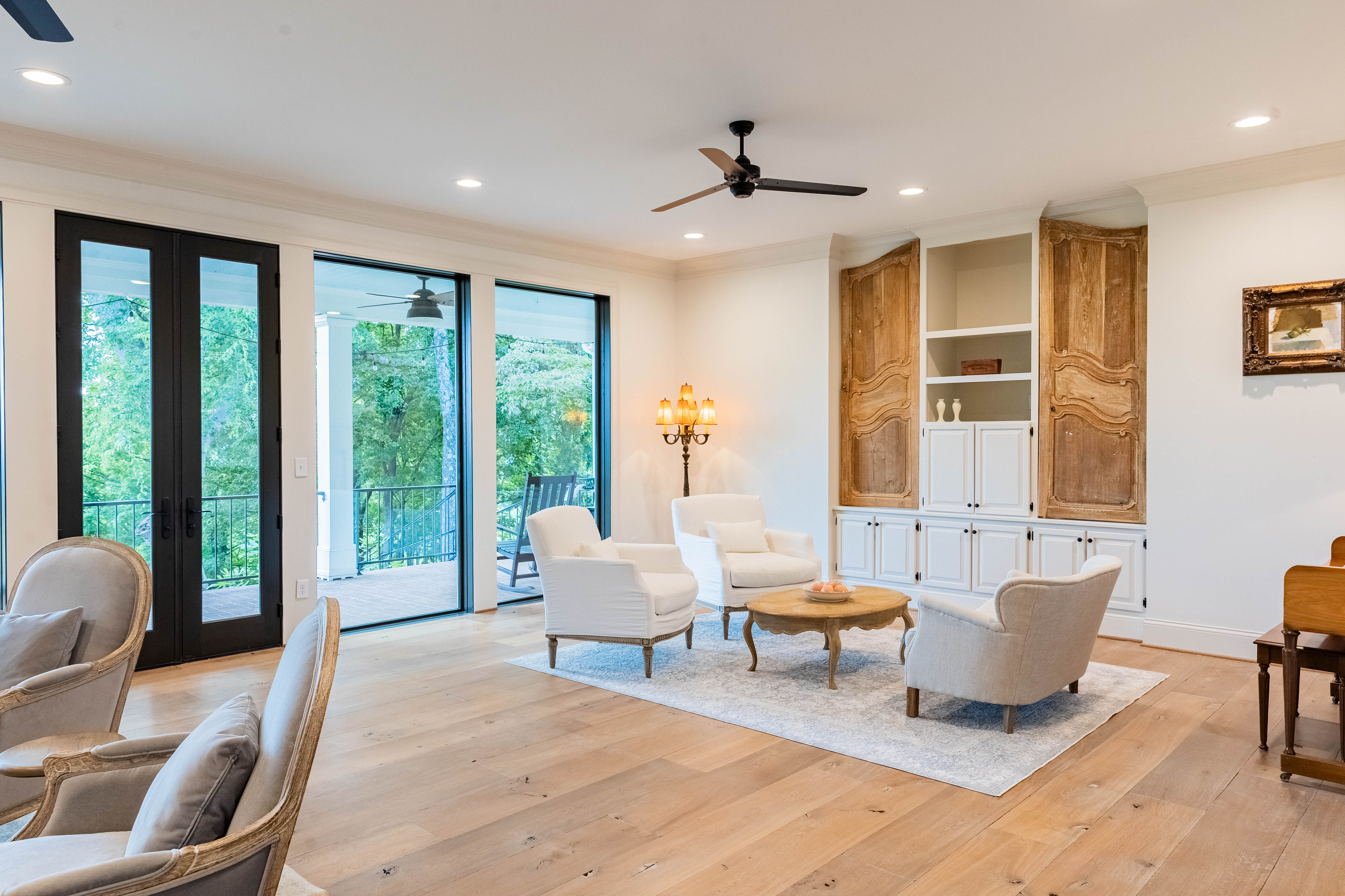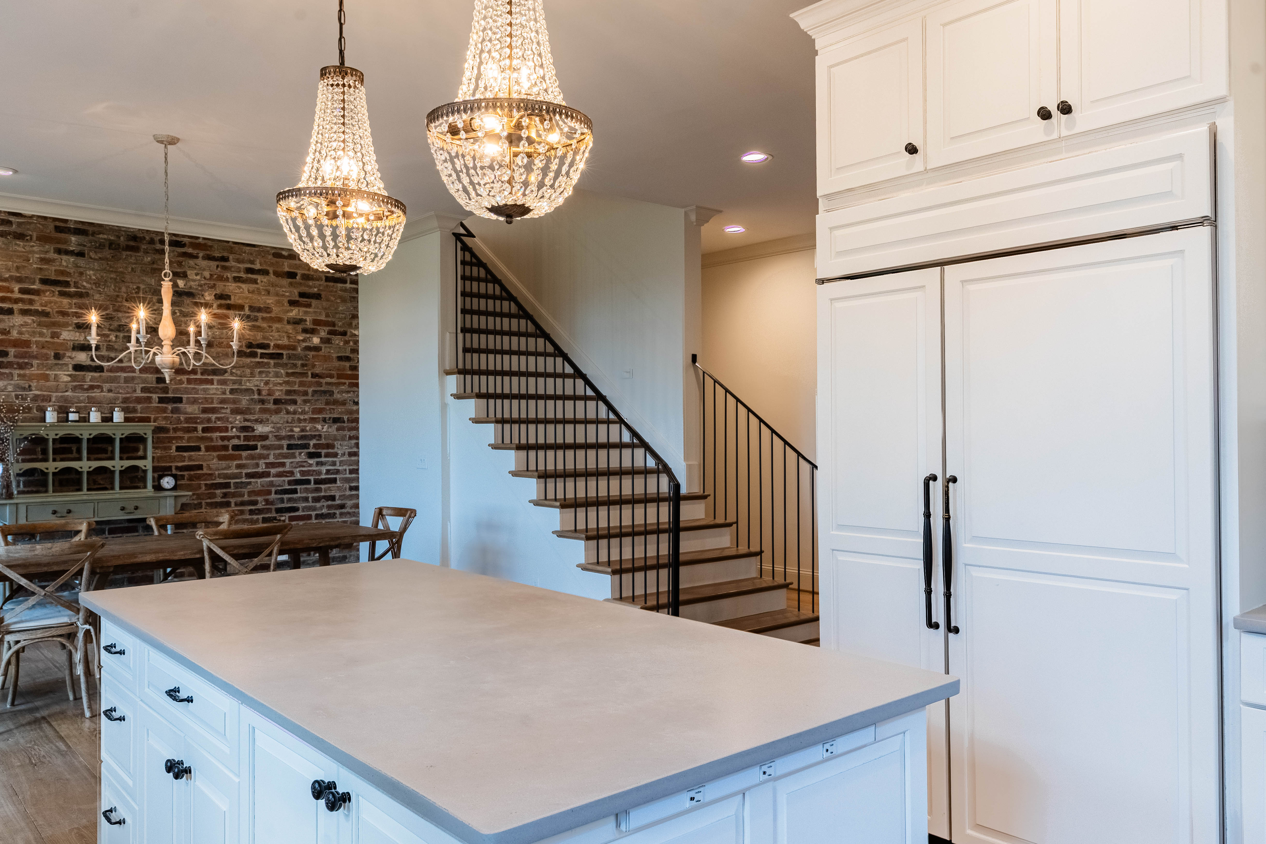 The family/living room is a showstopper, with floor-to-ceiling glass framing panoramic countryside views, flowing seamlessly into the kitchen and breakfast area. The chef’s kitchen features a La Cornue Château Series oven and range as well as a Sub-Zero refrigerator, built for both function and luxury.