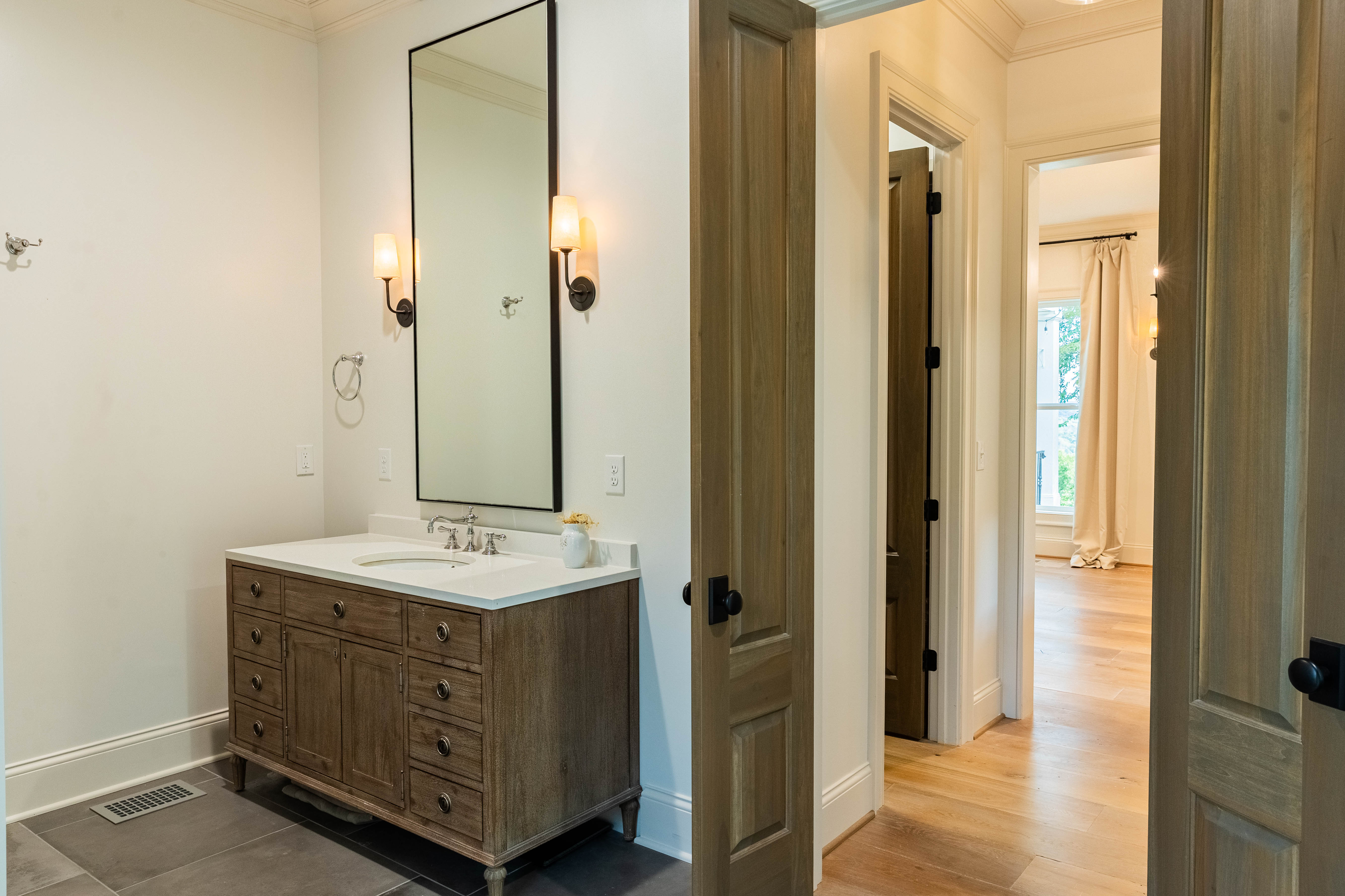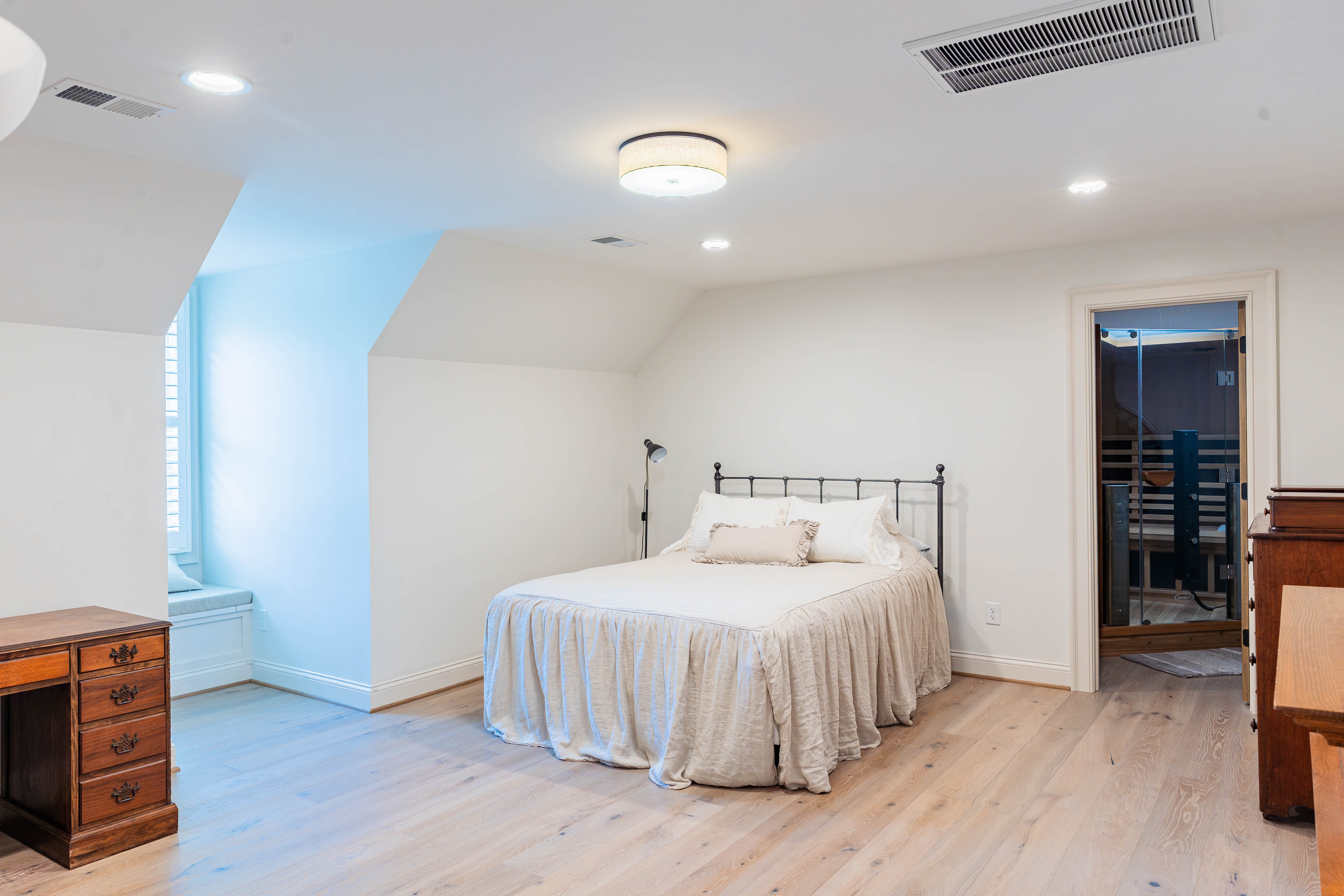 The main-level primary suite offers a private sanctuary, while all additional bedrooms are oversized and include en-suite baths. One guest suite even includes a three-person full-spectrum sauna. Upstairs, multiple bonus rooms allow endless flexibility for a lounge, theater, gym, classroom, or studio.